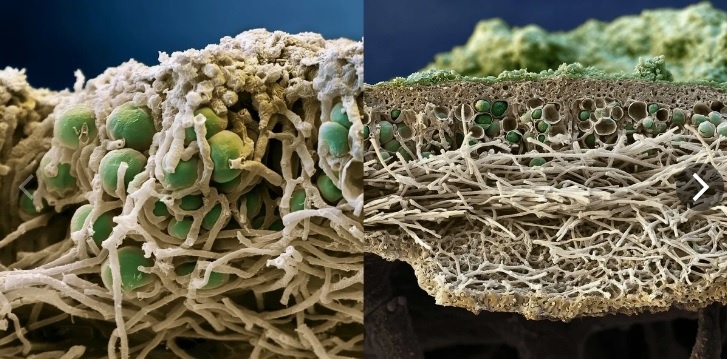 - Задание 4. На фотографиях показан разрез через таллом лишайника. Выберите верное утверждение.